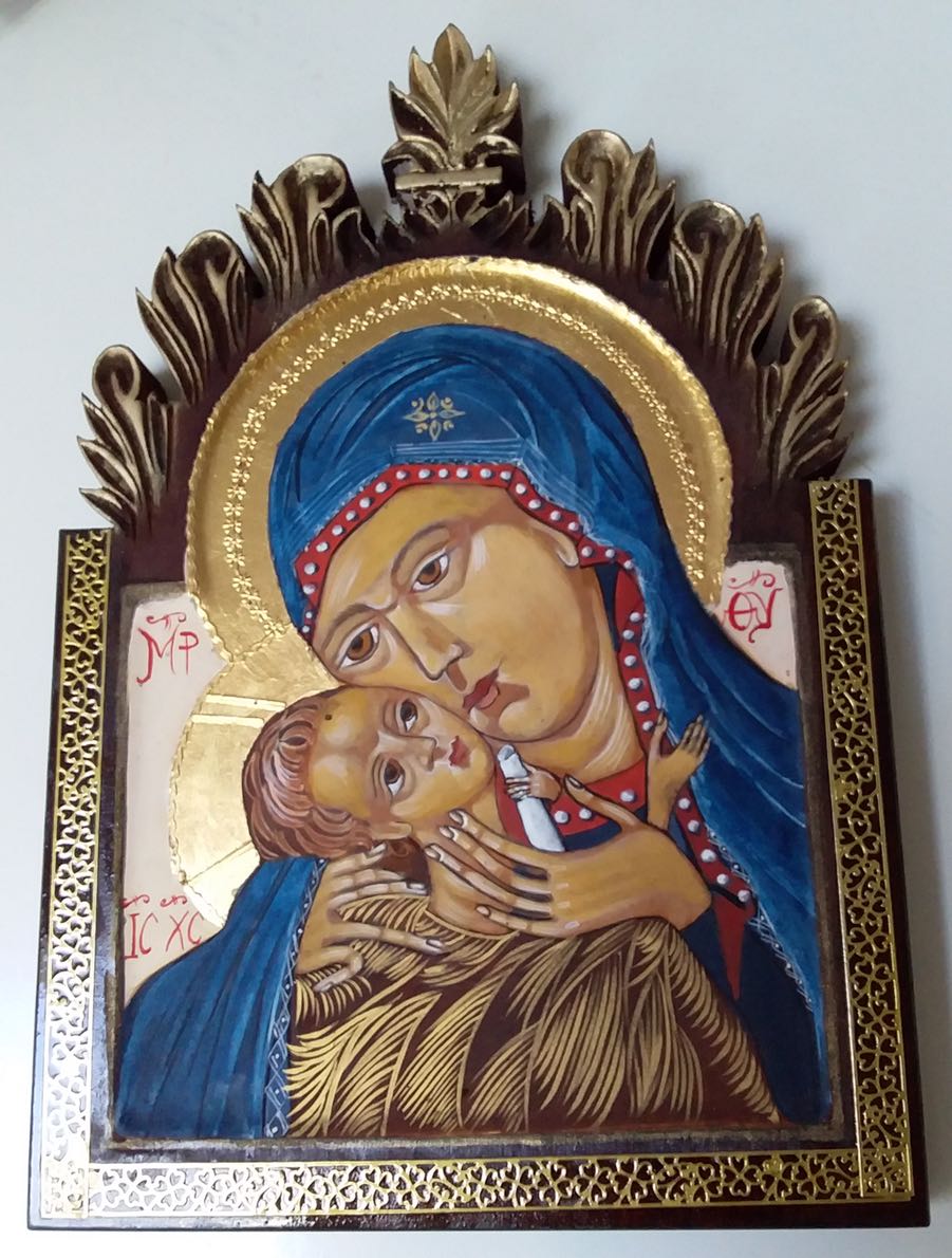 Moeder Gods met kind ( hodegetria) tempera Algemeen, Gods, MoederDoor Margreth Decker18 september 201924 krt goud B26 H30
