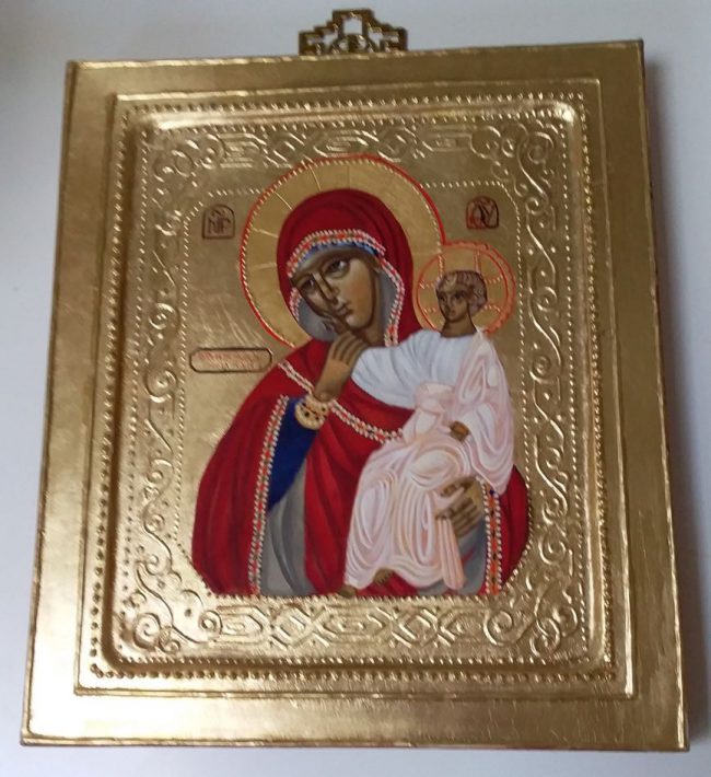 sep182019 Moeder Gods van Tederheid (eleousa) tempera Algemeen, Gods, MoederDoor Margreth Decker24 krt goud B18 H22