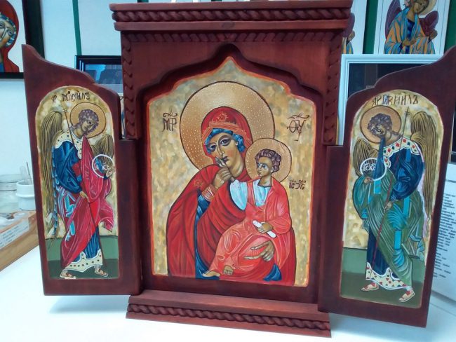 sep182019 Triptiek Moeder Gods Engel Gabriel en Michael ( hodegetria) Algemeen, Gods, MoederDoor Margreth Deckerlindenhout B32 H45